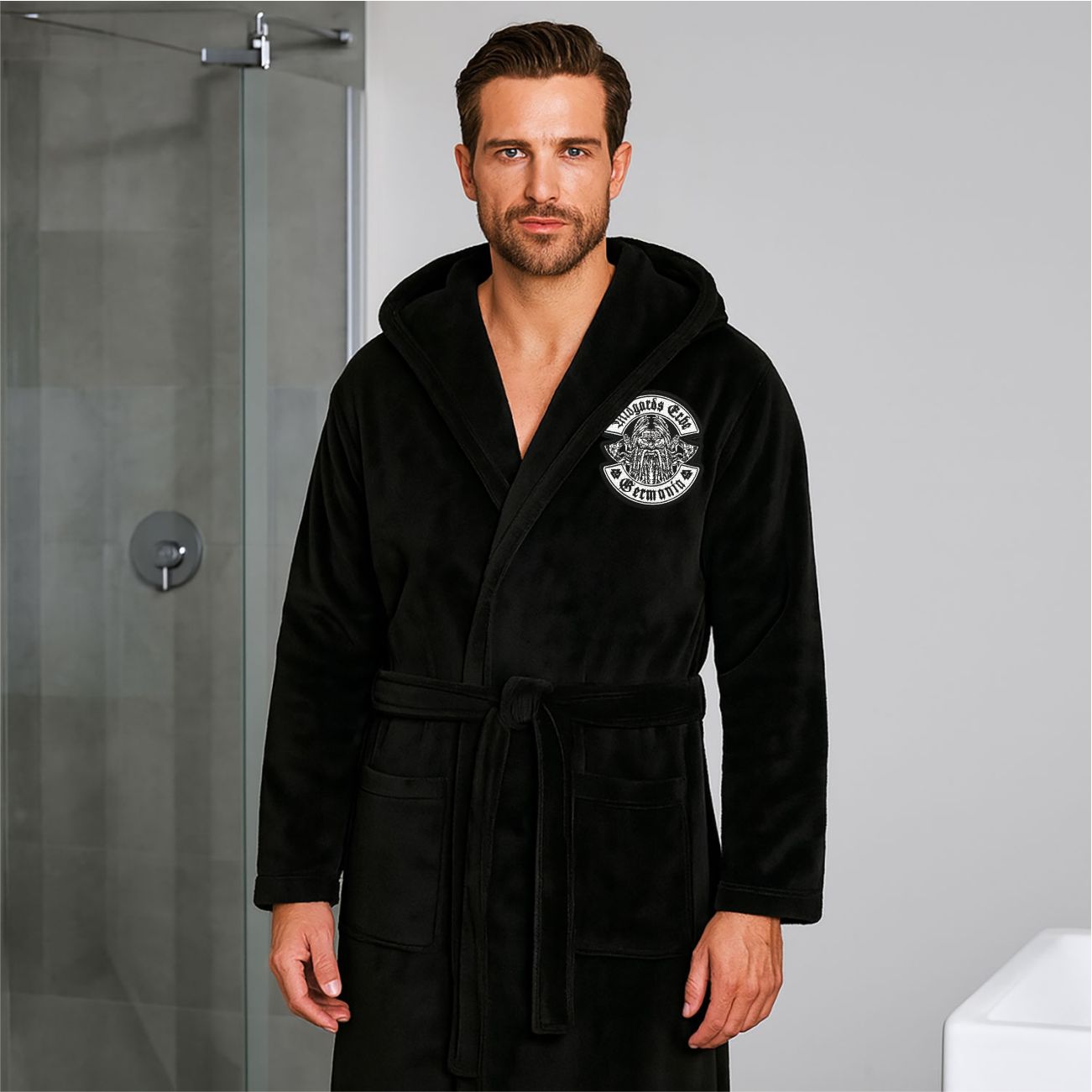 Bademantel mit Kapuze schwarz Midgards Erbe