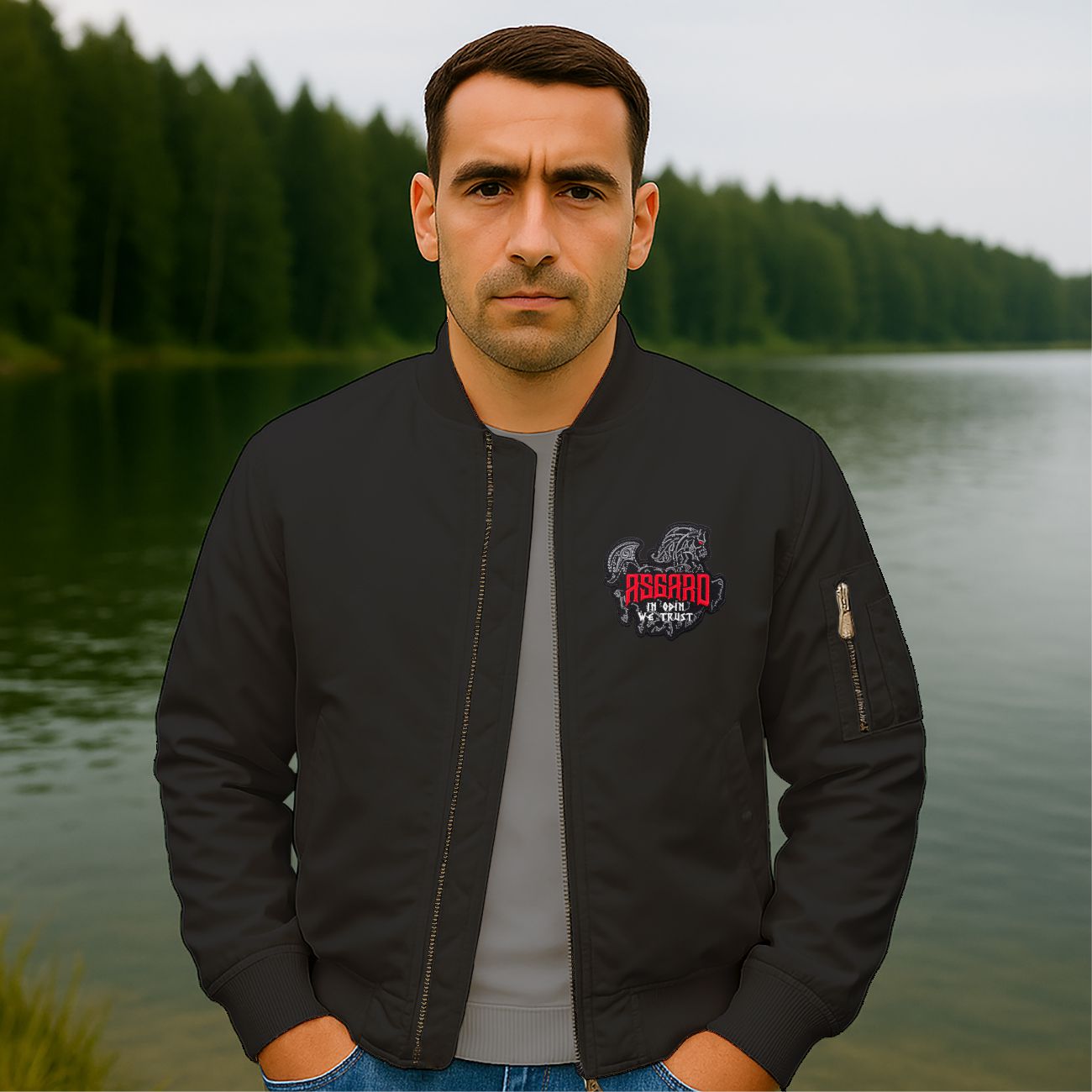 Herren Bomberjacke Asgard In Odin we trust mit Aufnäher