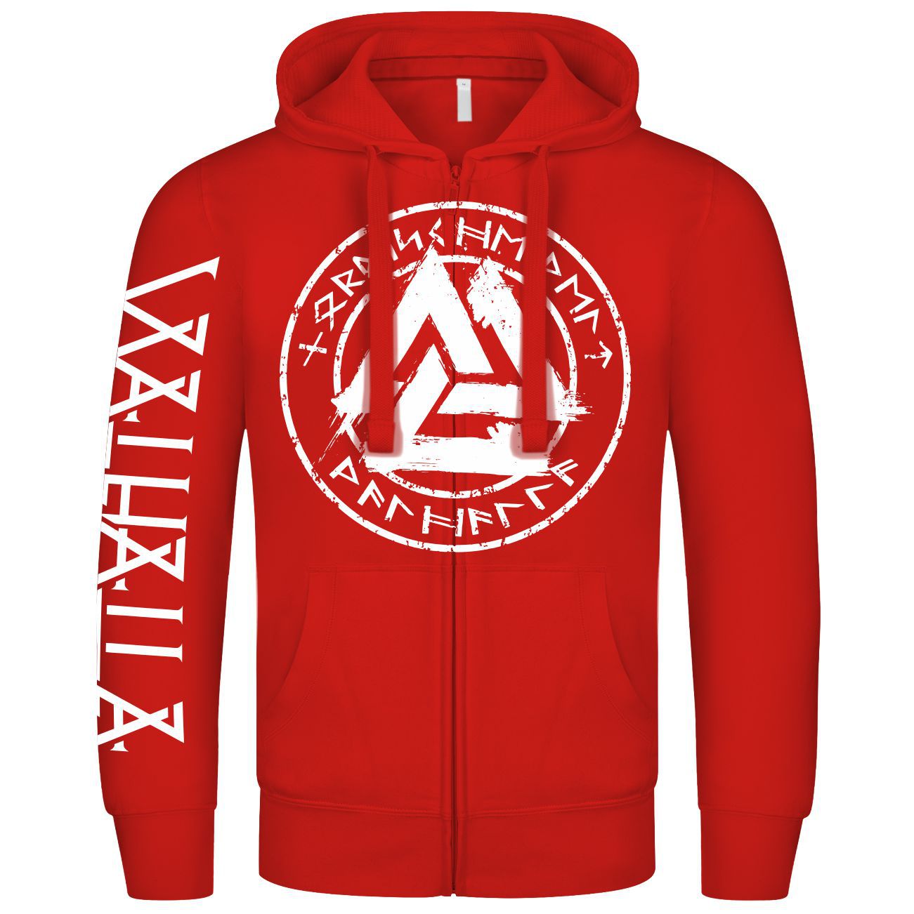 Männer Kapuzenjacke mit Brustdruck Nordische Welt Walhalla Wotansknoten weiss