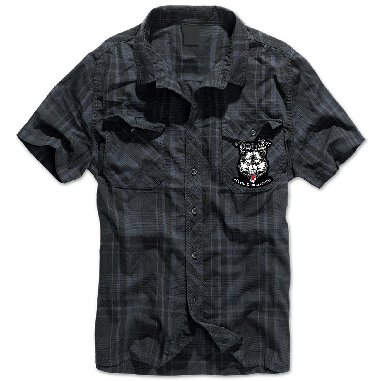 Hemd Kurzarm mit Aufnäher Karo kariert Lieber ein Wolf Odins als ein Lamm Gottes