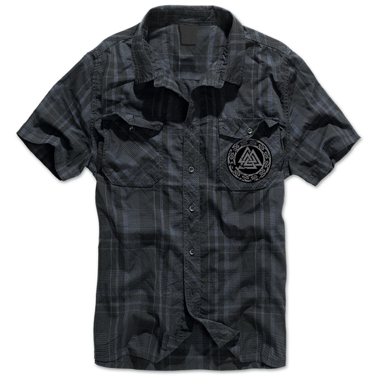 Hemd Kurzarm mit Aufnäher Karo kariert Wotansknoten Kreis GRAU