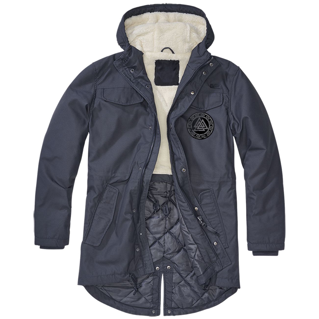 Fishtail Winter Parka Jacke hinten lang Wotansknoten Kreis GRAU Grösse S bis 5XL