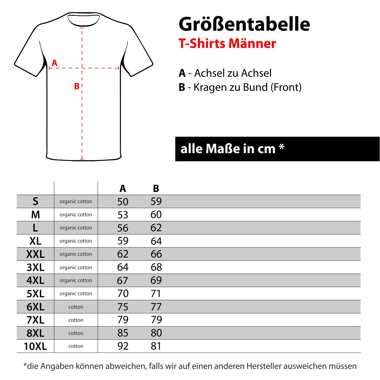- Die T-Shirts fallen körperbetonter aus – Wer es lockerer mag, bitte eine Größe größer bestellen